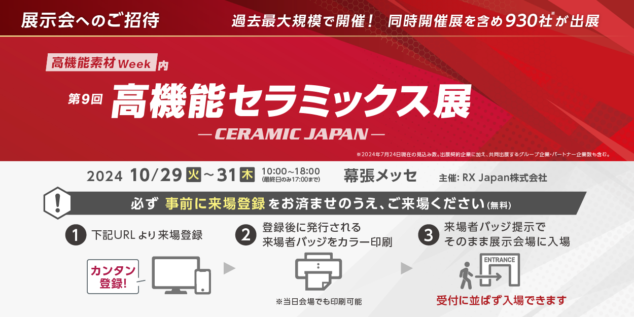 さて、弊社では来る10月29日(火)~31日(木)までの3日間、幕張メッセで開催される「第9回セラミックスジャパン高機能セラミックス展」に出展させて頂く運びとなりましたので、ここにご連絡申し上げます。