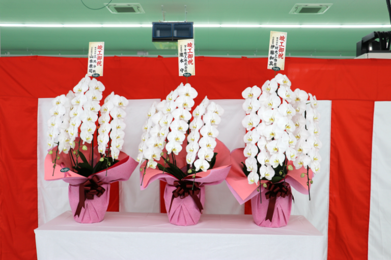 ご丁寧にご祝辞だけでなく、立派な御花等、数々のお祝いの品を頂戴いたしましたこと厚く御礼申し上げます。