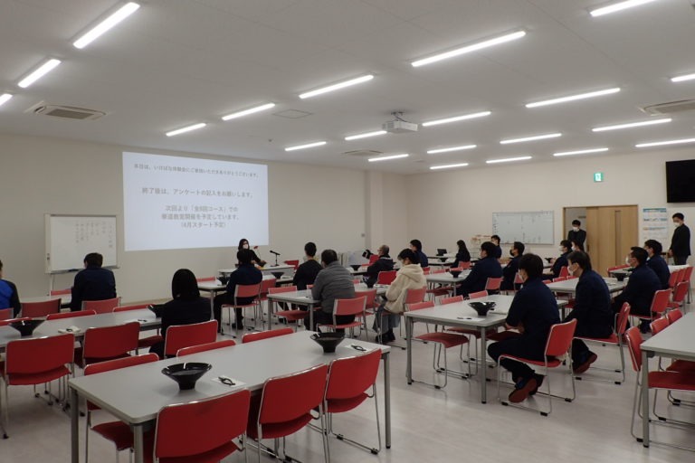 2022年2月17日、華道家元池坊様より講師の方々にお越し頂き、生け花体験会を開催頂きました。