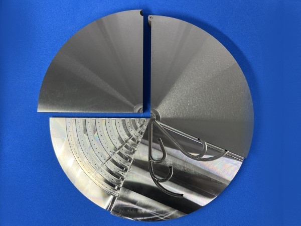 外径:φ310mm 穴径:φ0.8 穴数:525穴 溝幅6mm、深さ2mmの溝が彫ってあります。 |